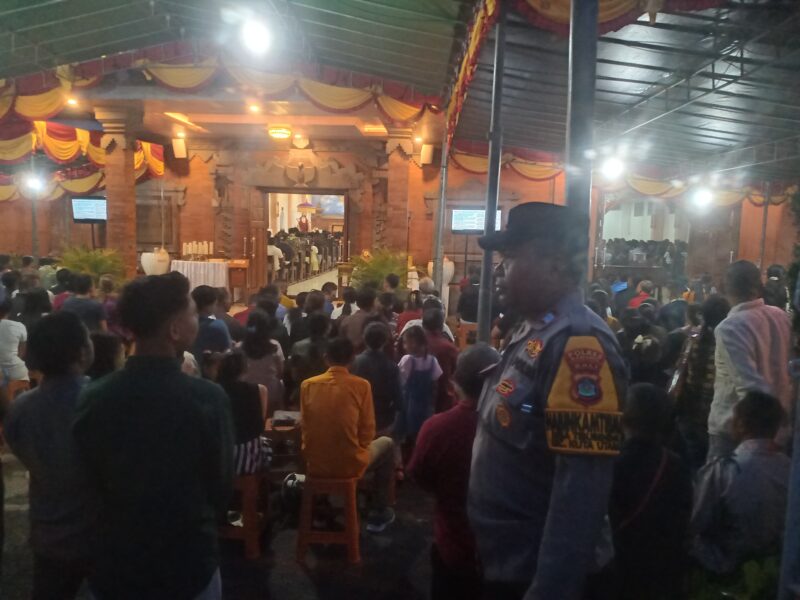 Gereja Santo Paulus Kulibul menjadi pusat ibadah Rabu Abu bagi umat Kristiani di wilayah Desa Tibubeneng Kecamatan Kuta Utara, Kabupaten Badung, Bali. Bhabinkamtibmas setempat Aiptu I Wayan Sadia hadir melakukan pengamanan memastikan seluruh rangkaian ibadah berlangsung dengan aman dan kondusif, pada Rabu (18/02/2026) pukul 20.00 Wita.