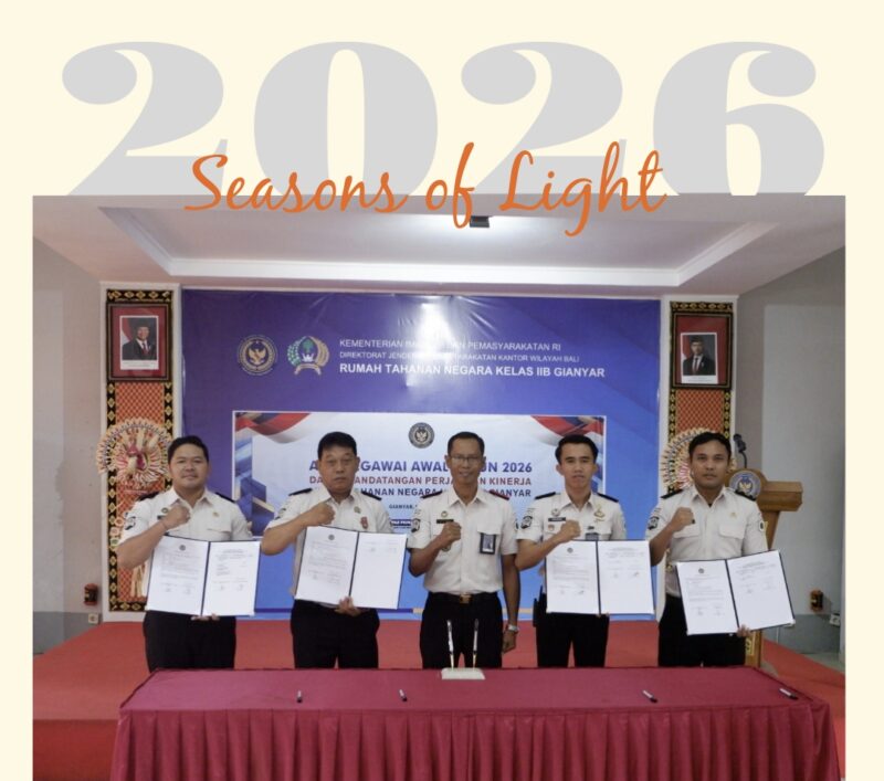 Rumah Tahanan Negara (Rutan) Kelas IIB Gianyar melaksanakan kegiatan Penandatanganan Perjanjian Kinerja Tahun 2026, bertempat di Aula Sahardjo Rutan Gianyar. Kegiatan ini merupakan bentuk komitmen jajaran Rutan Gianyar selepas Apel Bersama Awal Tahun 2026 dalam mewujudkan kinerja organisasi yang profesional, akuntabel, dan berorientasi pada hasil, pada Senin (05/01/2026).
