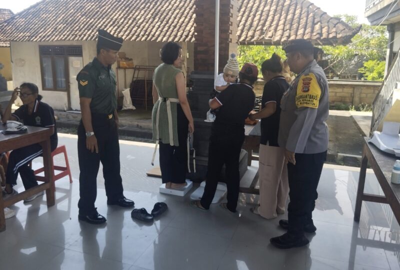 Dalam upaya mewujudkan masyarakat yang sehat dan sejahtera, Babinsa Desa Keramas Koramil 1616-04/Blahbatuh Sertu Nyoman Lancar bersama Bhabinkamtibmas Desa Keramas Aiptu Made Artike melaksanakan pendampingan dan dukungan terhadap kegiatan Posyandu Siklus Hidup yang berlangsung di Balai Banjar Palak, Desa Keramas, Kecamatan Blahbatuh, Kabupaten Gianyar, pada Senin (03/11/2025).