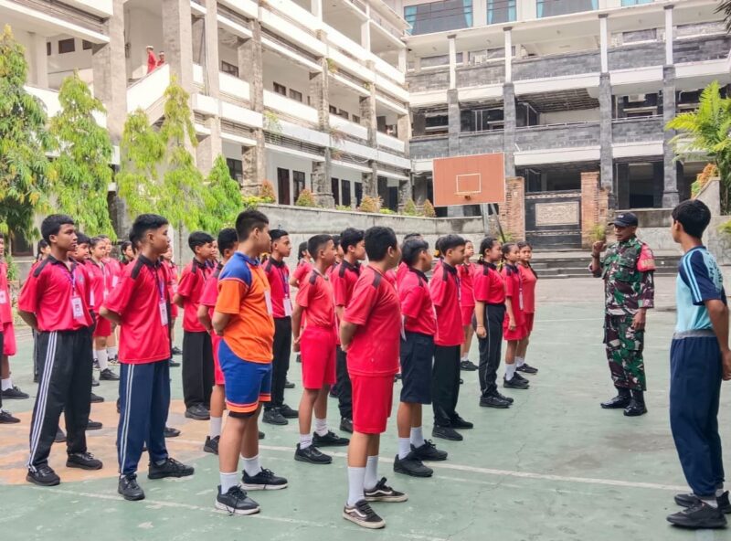 Babinsa Desa Kutuh, Serka Dominggus Mai Sila, dalam rangka melaksanakan kegiatan membangun karakter calon OSIS SMPN 5 Kuta Selatan dengan melatih ketangkasan baris-berbaris (PBB). Kegiatan ini berlangsung di Lapangan SMPN 5 Kuta Selatan Desa Kutuh, Kecamatan Kuta Selatan, Kabupaten Badung, pads Kamis (23/10/2025).