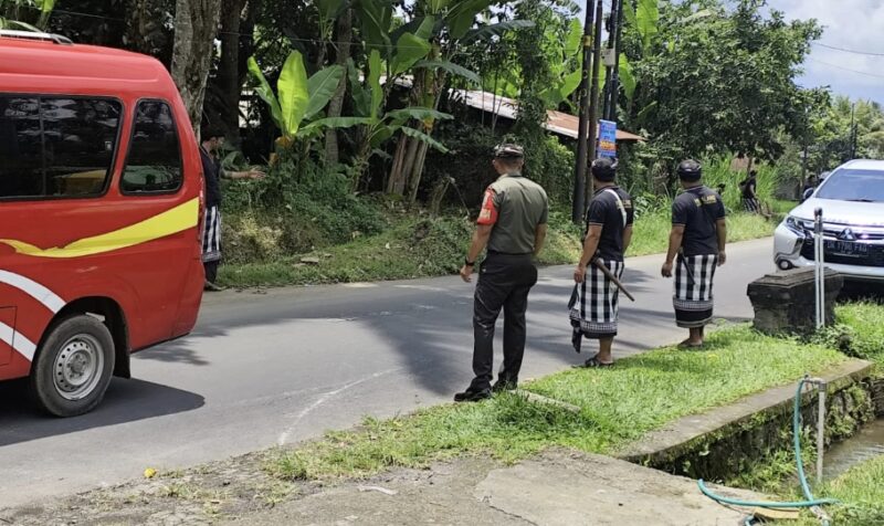 Dalam rangka mendukung kelancaran dan keamanan kegiatan keagamaan di wilayah binaan, Babinsa Desa Taro Koramil 1616-06/Tegallalang Sertu I Made Rai Wibisana bersama Bhabinkamtibmas Desa Taro Bripka I Made Wartu melaksanakan pengamanan dan pengaturan arus lalu lintas pada pelaksanaan Karya Melaspas Pasupati Ida Bhatara Ratu Mas sareng Ratu Sakti di Desa Adat Tatag, Desa Taro, Kecamatan Tegallalang, Kabupaten Gianyar, pada Selasa (04/11/2025).