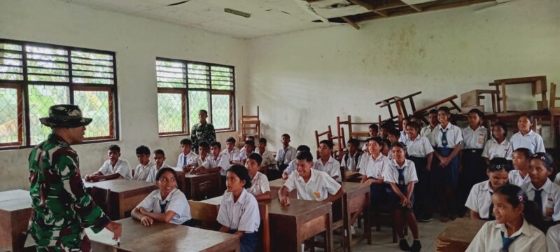 Program TNI Manunggal Membangun Desa (TMMD) Ke-128 Kodim 1629/Sumba Barat Daya tidak hanya fokus pada pembangunan fisik, namun juga menyasar kegiatan non fisik yang bermanfaat bagi masyarakat, khususnya generasi muda. Salah satunya melalui pemberian materi Wawasan Kebangsaan (Wasbang) kepada siswa SMP 3 Wewewa Selatan di Desa Umbu Wango, Kecamatan Wewewa Selatan, Kabupaten Sumba Barat Daya, pada Selasa (28/04/2026).