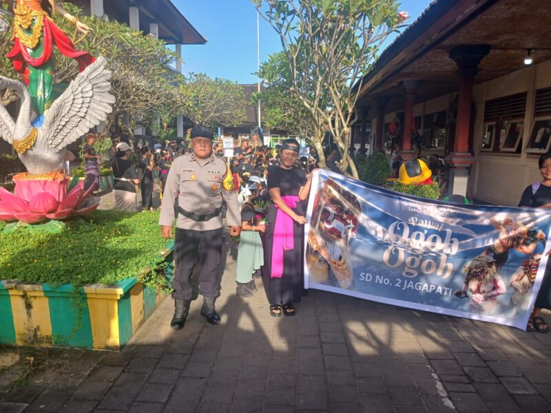 Dalam rangka menyambut perayaan Hari Raya Nyepi Tahun Saka 1948, Bhabinkamtibmas Desa Jagapati Polsek Abiansemal melaksanakan pengamanan kegiatan lomba parade ogoh-ogoh yang diikuti oleh siswa-siswi TK dan SDN 2 Jagapati, Jumat (13/3/2026) pagi.
