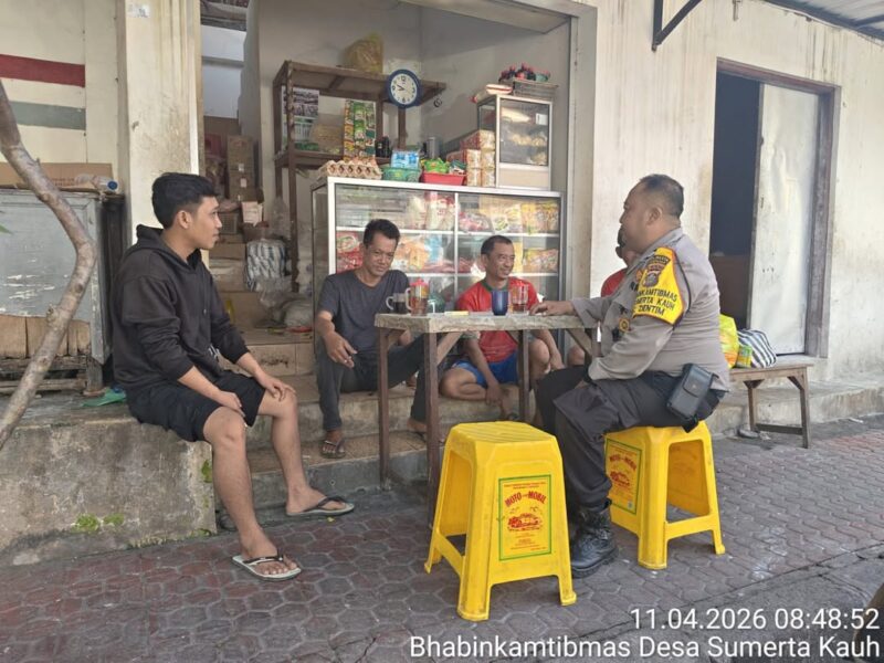 Bhabinkamtibmas Desa Sumerta Kauh Sambang dialogis dengan Warga Masyarakat melalui Program “Ngopi Kamtibmas”