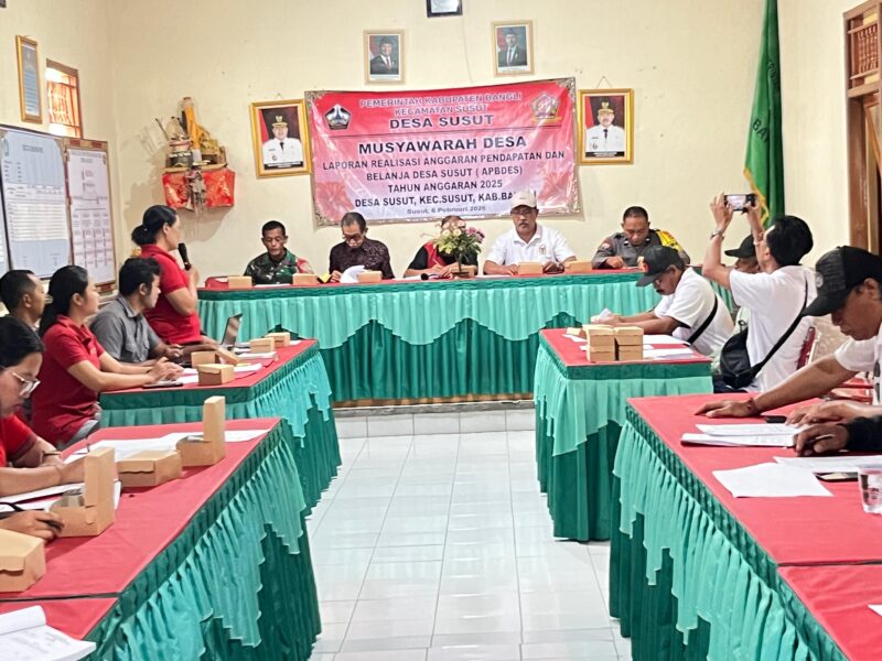 Dalam rangka mendukung transparansi dan akuntabilitas pengelolaan keuangan desa, Bhabinkamtibmas Desa Susut, Aipda Anak Agung Edy Sanjaya, menghadiri kegiatan Musyawarah Desa (Musdes) terkait pelaporan realisasi pelaksanaan Anggaran Pendapatan dan Belanja Desa (APBDes) Tahun Anggaran 2025.