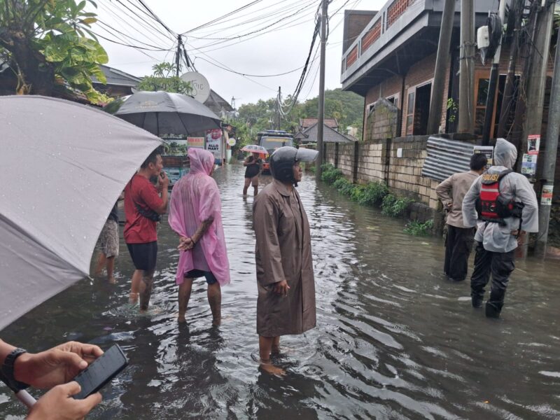Bhabinkamtibmas Kelurahan Sanur Aiptu I Nyoman Suwasama melaksanakan kegiatan pemantauan wilayah terkait adanya genangan air akibat curah hujan yang cukup tinggi, pada Selasa (24/02/2026).