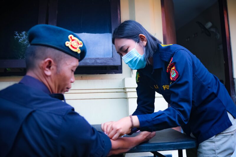 Dalam pemeriksaan tersebut, tim medis juga melakukan pengecekan tekanan darah, pemberian vitamin tablet untuk menjaga daya tahan tubuh, serta pemberian obat sesuai dengan keluhan yang disampaikan anggota.