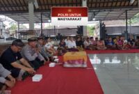 Personil Unit Binmas Polsek Sukawati bersama Yayasan Relawan Bali Andy melaksanakan kegiatan sosialisasi dan penyerahan bantuan sosial di Balai Banjar Apuan, Desa Singapadu, Kecamatan…