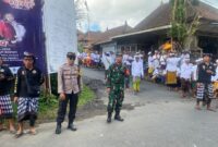 Bhabinkamtibmas Desa Timuhun, Aiptu I Wayan Budiasa, bersama Babinsa dan pecalang melaksanakan pengamanan kegiatan Karya Penyineban di Pura Bale Agung, Desa Adat Dusun Kawan,…