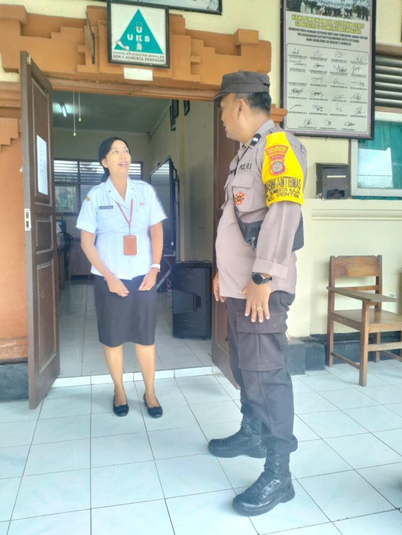 Dalam rangka menjaga situasi keamanan dan ketertiban masyarakat serta mempererat hubungan dengan lingkungan pendidikan, Bhabinkamtibmas/Bhabin Desa Sumerta Kaja, Aipda Ketut Srinadi, melaksanakan kegiatan sambang kamtibmas melalui metode Door To Door System (DDS) di SD 5 Sumerta yang berlokasi di Jl. Kenyeri Gang Merak, Desa Sumerta Kaja, Denpasar Timur, Selasa (04/02/2026) pukul 09.00 Wita.