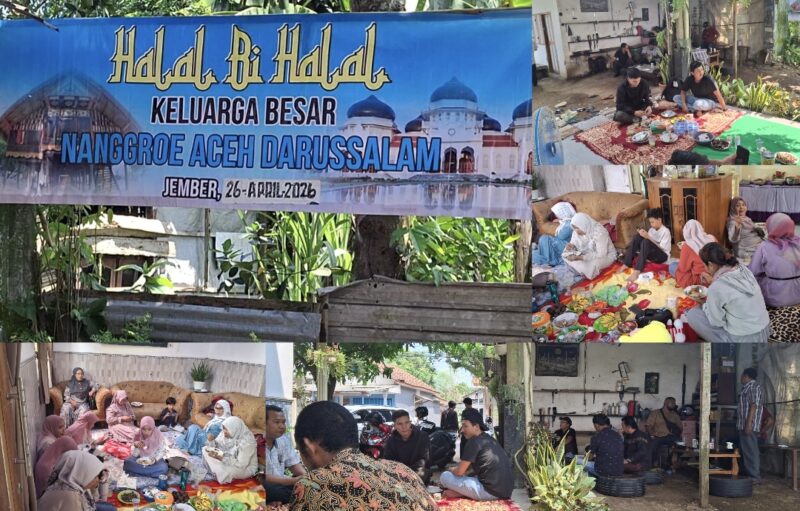 Suasana hangat dan penuh kekeluargaan terasa begitu kental di kediaman A. Munir, yang terletak di Desa Sumberjo, Kecamatan Glundengan, Kabupaten Jember, pada Minggu (26/04/2026). Lokasi tersebut menjadi saksi pertemuan akbar yang diinisiasi oleh Keluarga Besar Nanggroe Aceh Darussalam (NAD) dalam rangkaian kegiatan Halal Bi Halal.