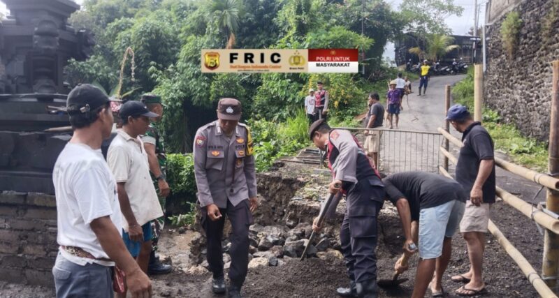Polsek Blahbatuh melaksanakan gotong royong bersama masyarakat untuk membersihkan material tanah longsor yang menutup akses jalan di Banjar Saba, Desa Saba, Kecamatan Blahbatuh, pada Selasa (16/12/2025). Kegiatan ini melibatkan Unit Samapta Polsek Blahbatuh, Bhabinkamtibmas Desa Saba Bripka I Nyoman Mara Arta, serta Babinsa TNI, sebagai wujud sinergi dan kepedulian terhadap keselamatan warga.