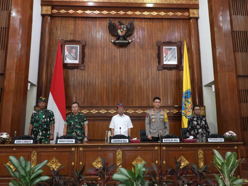 Rapat Koordinasi ini digelar sebagai upaya memperkuat sinergi antarinstansi dalam menjaga stabilitas keamanan serta keharmonisan masyarakat di Pulau Dewata menjelang dua hari besar Keagamaan tersebut.