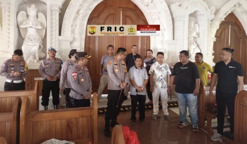Kapolresta Denpasar didampingi oleh Kapolsek Denpasar Timur Kompol I Ketut Tomiyasa, S.H., M.H., dan disambut langsung oleh Pendeta Gereja Katedral, Romo Herman Yosep, beserta jajaran pengurus gereja dan petugas pengamanan internal.