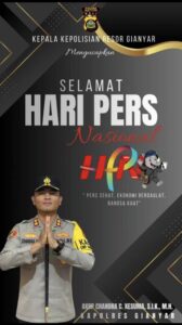 Kapolres Gianyar AKBP Chandra mengucapkan ucapan selamat yang hangat pada Hari Pers Nasional (HPN) yang diperingati pada tanggal 9 Februari 2026. Dalam amanatnya, beliau menekankan bahwa pers bukan hanya sebagai wahana penyampaian informasi, melainkan juga mitra penting dalam membangun masyarakat yang cerdas dan menjaga stabilitas wilayah Gianyar.