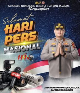 Kapolres Klungkung AKBP Mikael Hutabarat mengucapkan selamat Hari Pers Nasional (HPN) yang diperingati setiap tanggal 9 Februari. Dalam sambutannya, dia menekankan peran pers sebagai mitra strategis dalam menjaga keamanan dan ketertiban masyarakat di wilayah Klungkung.