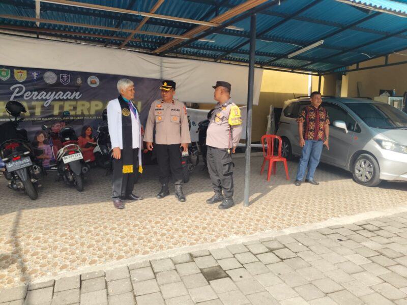 Kapolsek Gianyar Kompol I Made Adi Suryawan, S.H., M.M., turun langsung memantau pelaksanaan pengamanan kegiatan persembahyangan Jumat Agung di Gereja Eben Haezer, di jalan Burung Gereja no. 2 Lingkungan Kelod Kauh, Kelurahan Beng, Kecamatan Gianyar, pada Jumat pagi (3/4/2026). Kegiatan ini merupakan bagian dari upaya Polsek Gianyar dalam memastikan rangkaian perayaan Hari Raya Paskah umat Kristiani berjalan aman dan kondusif.