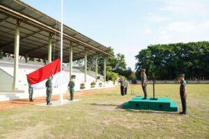 Rangkaian kegiatan upacara berjalan dengan tertib dan penuh semangat kebangsaan, meliputi pembacaan keputusan Kongres Pemuda 1928, menandai semangat kebersamaan dan nasionalisme yang terus hidup di dada para prajurit dan seluruh peserta upacara.