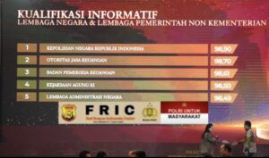 Kepolisian Negara Republik Indonesia (Polri) kembali mencatatkan prestasi membanggakan dalam bidang keterbukaan informasi publik. Dalam Monitoring dan Evaluasi Keterbukaan Informasi Publik (Monev KIP) Tahun 2025 yang diselenggarakan Komisi Informasi Pusat RI, Polri berhasil meraih predikat Informatif dengan nilai 98,90, sekaligus menempati peringkat pertama kategori Lembaga Negara dan Lembaga Pemerintahan Non Kementerian (LNNK).