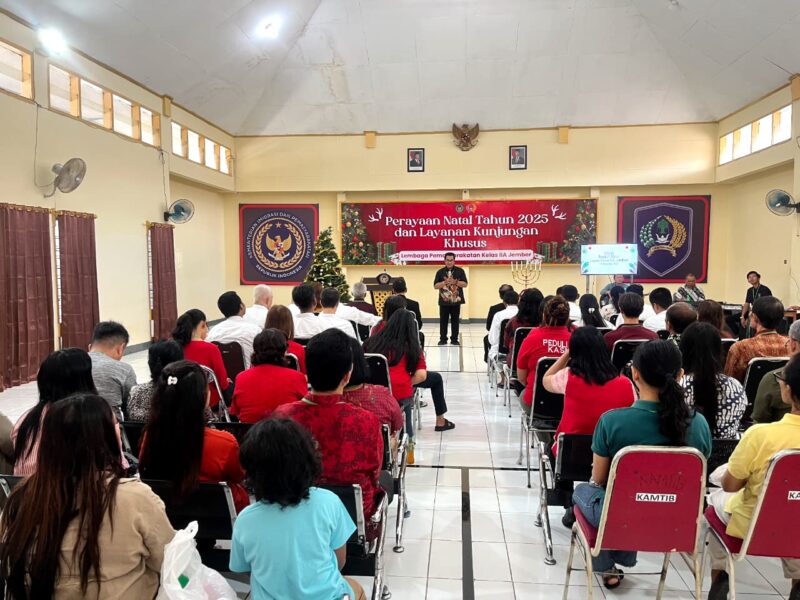Dalam momentum perayaan Hari Natal Tahun 2025, Lembaga Pemasyarakatan (Lapas) Kelas IIA Jember menggelar Ibadah Natal dan Layanan Kunjungan Khusus bagi warga binaan yang beragama nasrani, pada Jumat (26/12/2025). Kegiatan ini bertujuan untuk memenuhi hak beribadah warga binaan sesuai keyakinannya sekaligus memberikan penguatan moril dan harapan hidup yang lebih baik selama menjalani masa pidana.