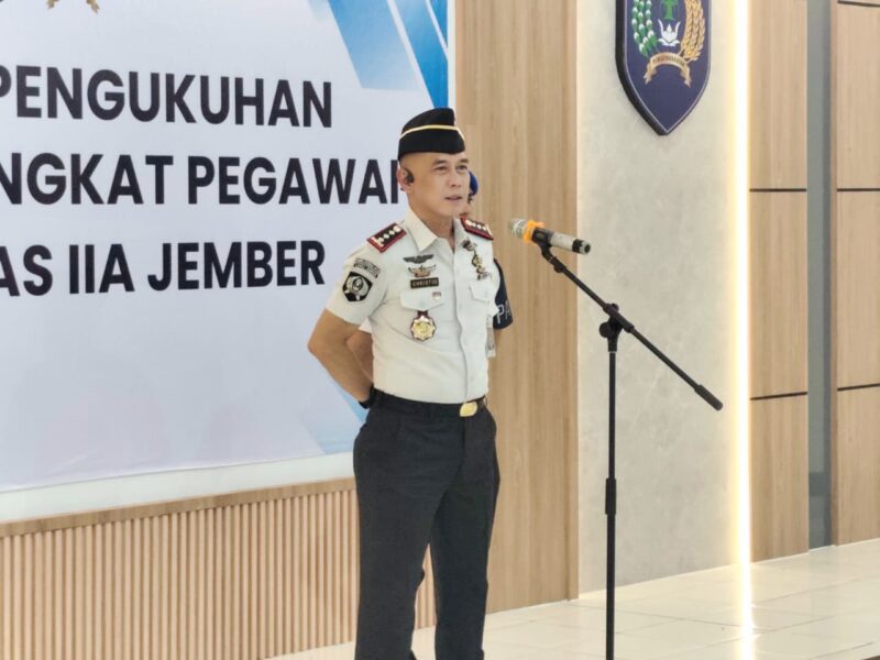 Lembaga Pemasyarakatan (Lapas) Kelas IIA Jember mengukuhkan kenaikan pangkat bagi pegawai, pada Kamis (16/4/2026). Sebanyak dua puluh orang pegawai naik pangkat dari Pengatur Muda Tingkat I (II/b) menjadi Pengatur (II/c), serta satu pegawai naik pangkat dari Penata Muda Tingkat I (III/b) menjadi Penata (III/c), berdasarkan Surat Keputusan Menteri Imigrasi dan Pemasyarakatan tentang Kenaikan Pangkat Pegawai Negeri Sipil.