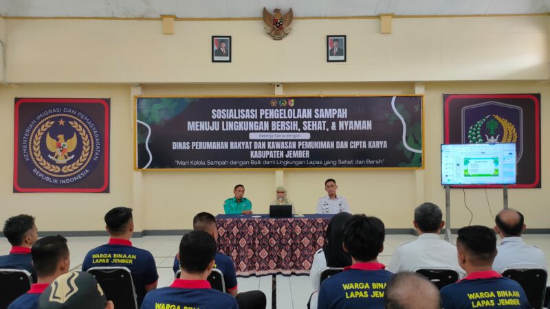 Lembaga Pemasyarakatan (Lapas) Kelas IIA Jember terus memperkuat komitmennya dalam menciptakan lingkungan yang bersih, sehat, dan nyaman melalui sinergi bersama Dinas Perumahan Rakyat, Kawasan Permukiman dan Cipta Karya Kabupaten Jember. Komitmen tersebut diwujudkan melalui kegiatan Sosialisasi Pengolahan Sampah yang digelar di Aula Lapas Jember, pada Rabu (25/02/2026).