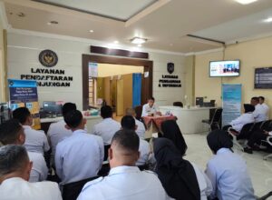 Dipimpin langsung oleh Kalapas Jember, RM. Kristyo Nugroho, simulasi ini melibatkan seluruh petugas layanan. Dengan penuh semangat, Kalapas memberikan pengarahan dan menjabarkan terkait uraian tugas masing-masing petugas secara detail untuk memastikan setiap tahapan layanan dipahami dan siap dilaksanakan.