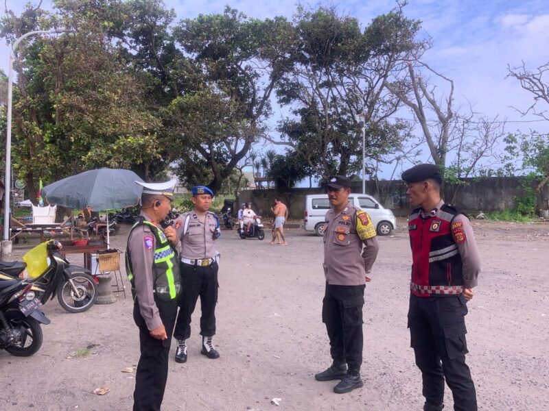Polsek Kuta Utara meningkatkan pengamanan di kawasan wisata pantai selama liburan Idul Fitri untuk memastikan keamanan dan kenyamanan pengunjung, pada Minggu (22/3/2026) Sore.