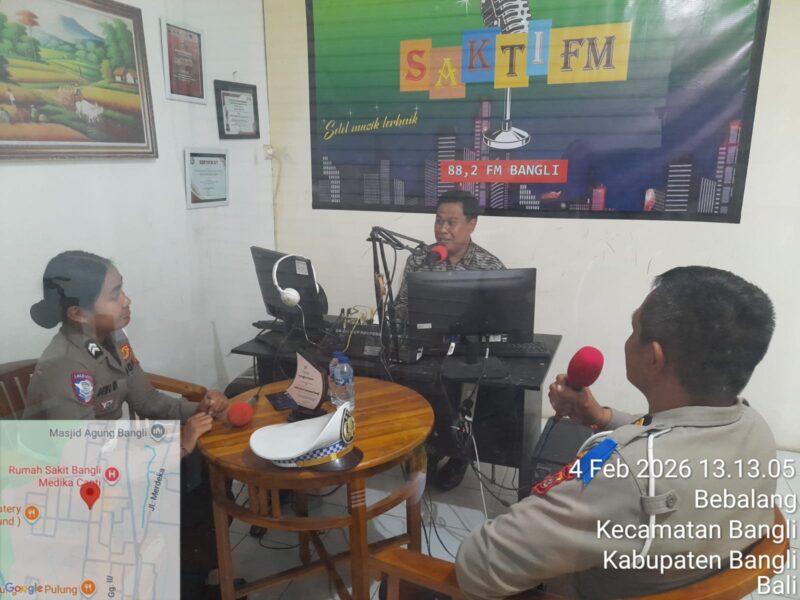 Kegiatan tersebut dilaksanakan, pada Kamis (05 Februari 2026) pukul 13.00 s/d 14.00 Wita, di Stasiun Radio Sakti FM Bangli Kasubsatgas Dikmas IPTU I Nengah Telaga bersama anggota.