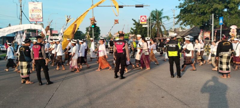 Dalam pelaksanaannya, personel Pos Yan Masceti membantu menyeberangkan masyarakat Seronggo yang hendak menuju pantai untuk melaksanakan persembahyangan. Kehadiran petugas juga bertujuan untuk mengantisipasi kemacetan serta menjaga keselamatan pengguna jalan lainnya. Hingga kegiatan berlangsung, situasi terpantau aman dengan arus lalu lintas padat namun tetap lancar.
