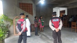 Bhabinkamtibmas Bersama Babinsa dan Pecalang Amankan Upacara Melasti Karya Agung di Pura Dalem Laplap