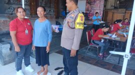 Jalin Silaturahmi, Bhabinkamtibmas Desa Ungasan Hadiri Upacara Melaspas