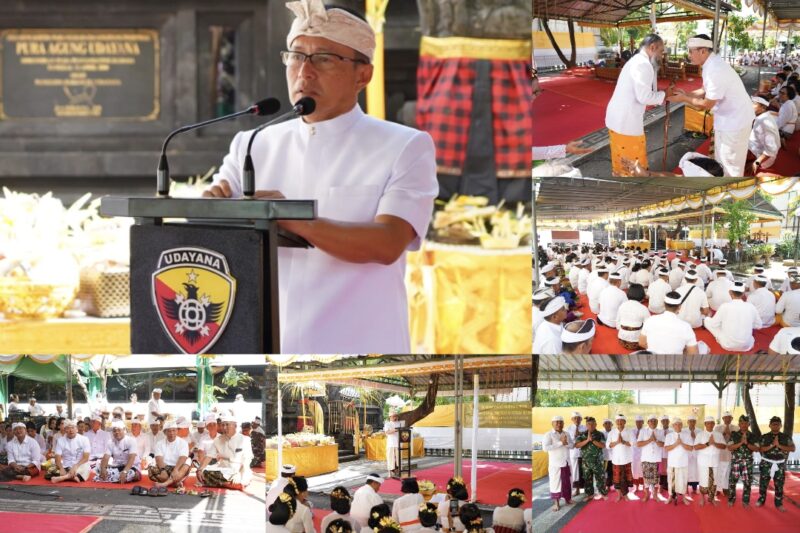 Pangdam IX/Udayana Mayjen TNI Piek Budyakto didampingi para Pejabat Utama Kodam IX/Udayana menghadiri kegiatan Piodalan Puja Wali Pura Agung Udayana yang dirangkaikan dengan Dharma Shanti Hari Raya Nyepi Tahun Baru Saka 1948/2026 M dengan tema “Vasudhaiva Kutumbakam , Satu Bumi Satu Keluarga Wujudkan TNI PRIMA”, pada Kamis (2/4/2026), di Pura Agung Udayana, Makodam IX/Udayana, Jalan Udayana No. 1 Denpasar.
