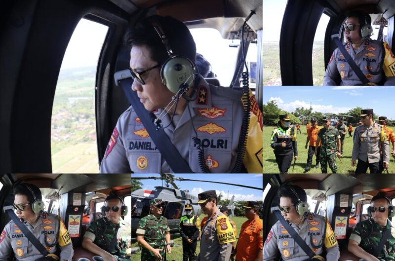 Kapolda Bali Daniel Adityajaya bersama Pangdam IX/Udayana Piek Budyakto dan Kepala Basarnas Bali I Nyoman Sidakarya melakukan peninjauan langsung ke jalur penyeberangan Gilimanuk dengan menggunakan helikopter, Selasa 17 Maret 2026.