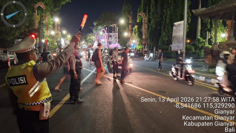 Unit Samapta Polsek Gianyar melaksanakan patroli barcode di sejumlah titik strong point wilayah hukum Polsek Gianyar, Senin (13/4/2026) malam. Kegiatan ini sebagai langkah preventif dalam menjaga keamanan dan ketertiban masyarakat (kamtibmas).