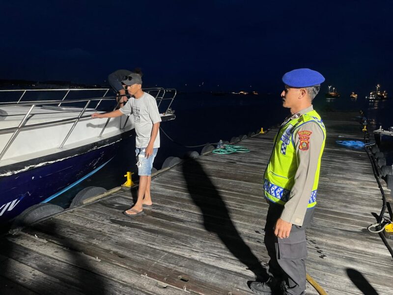 Patroli Malam Kakia Kampih, Satpolairud Polresta Denpasar Jaga Keamanan Dermaga Serangan