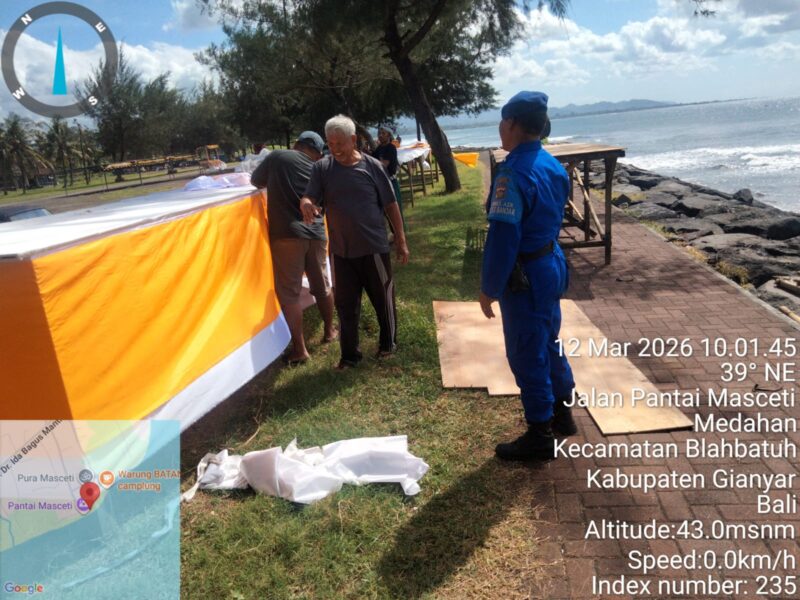 Personil Satuan Polisi Perairan dan Udara (Polairud) Polres Gianyar melaksanakan kegiatan patroli rutin di wilayah pesisir guna menjaga situasi keamanan dan ketertiban masyarakat (kamtibmas) di kawasan perairan. Kegiatan patroli tersebut dilaksanakan pada Kamis, 12 Maret 2026 pukul 10.00 Wita di kawasan Pantai Masceti, Desa Medahan, Kecamatan Blahbatuh, Kabupaten Gianyar.