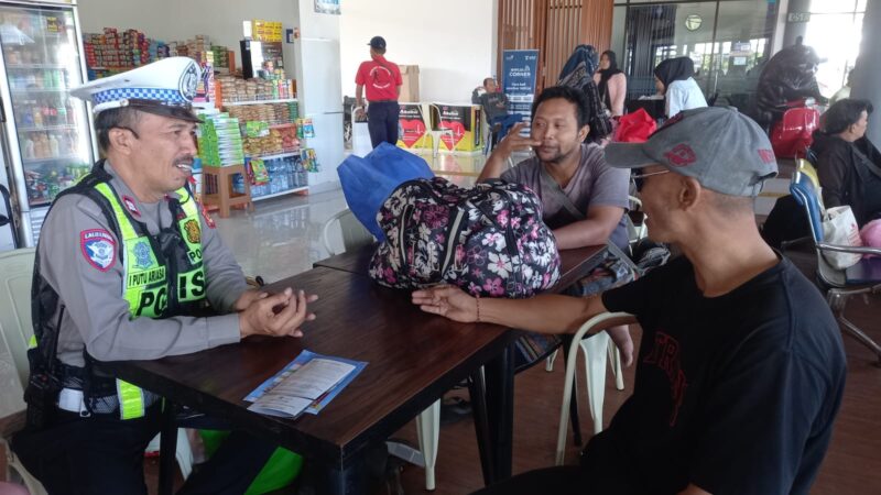 Subsatgas Rekayasa Lalu Lintas melaksanakan kegiatan imbauan kepada para penumpang yang melaksanakan perjalanan mudik di Terminal Mengwi dalam rangka pelaksanaan Operasi Ketupat Agung 2026.