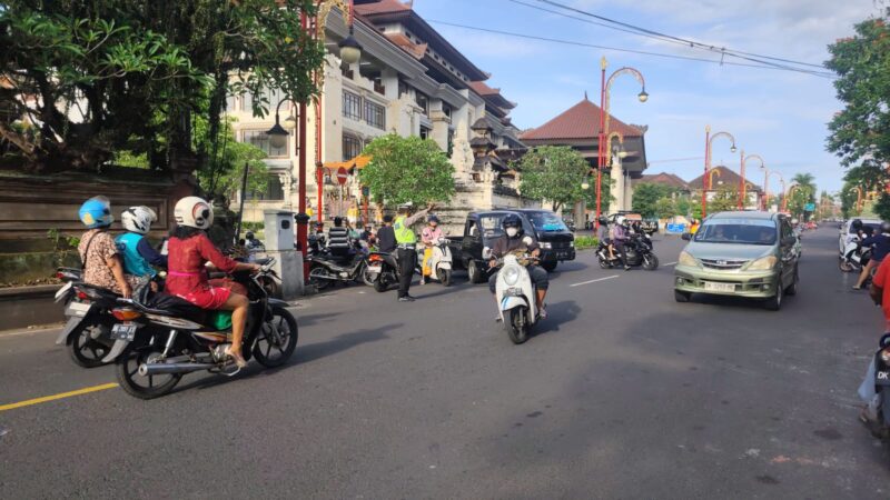 Pada Senin pagi (23/3/2026), Ps. Panit 2 Lantas Polsek Gianyar Aiptu I Wayan Suardika melaksanakan pengaturan arus lalu lintas di depan Pasar Rakyat Gianyar, Jalan Ngurah Rai, Kelurahan Gianyar, Kecamatan Gianyar. Kehadiran personel di titik rawan kepadatan ini bertujuan untuk mengantisipasi kemacetan sekaligus memberikan rasa aman bagi pengguna jalan.