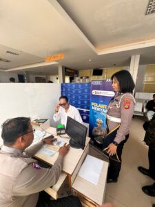 Petugas memberikan penjelasan secara jelas dan komunikatif kepada pemohon SIM guna memastikan seluruh prosedur berjalan tertib, lancar, dan sesuai ketentuan. Kehadiran personel Polwan juga menjadi bagian dari pengawasan langsung untuk memastikan pelayanan berjalan transparan dan bebas dari pungutan liar.