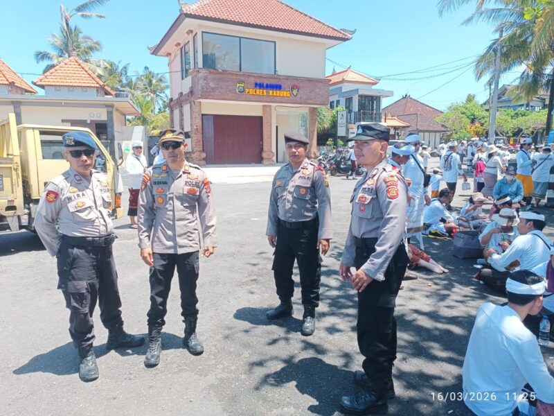 Polres Badung melalui Satgas II Preventif Subsatgas Pamobyek Vital dan Keramaian melaksanakan pengamanan kegiatan upacara Melasti yang digelar di Pantai Munggu, Desa Munggu, Kecamatan Mengwi, Kabupaten Badung, Senin (16/3/2026). Pengamanan ini bertujuan untuk memastikan rangkaian kegiatan keagamaan umat Hindu tersebut dapat berlangsung dengan aman, tertib, dan lancar, mengingat prosesi Melasti diikuti oleh masyarakat dari berbagai desa adat.