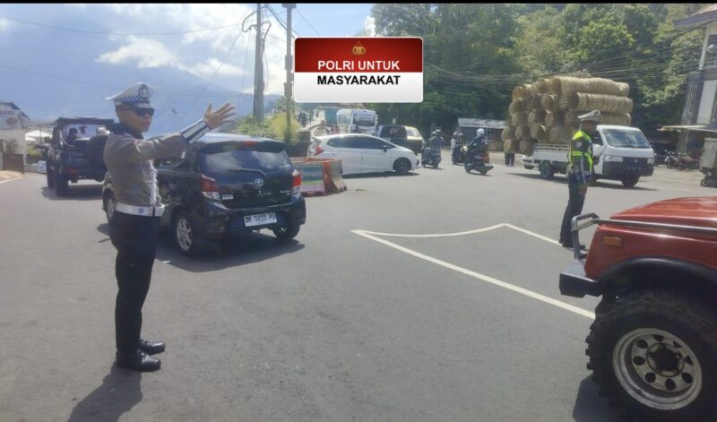 Dalam rangka menjaga kelancaran dan keamanan arus lalu lintas di kawasan wisata, Polres Bangli menurunkan personel untuk melakukan pengamanan dan pengaturan lalu lintas di Obyek Wisata Penelokan, Kintamani, Bangli, pada Sabtu (08/11/2025).