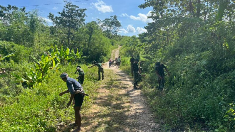 Kegiatan tersebut dilakukan secara gotong royong bersama masyarakat setempat, dengan membersihkan semak belukar, meratakan badan jalan, serta menyingkirkan material yang menghambat akses transportasi warga.