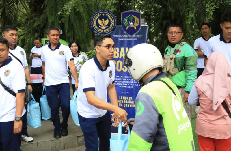 Dalam rangka memeriahkan peringatan Hari Bakti Kementerian Imigrasi dan Pemasyarakatan (Kemenimipas) yang ke 1 pada tahun 2025, Lembaga Pemasyarakatan (Lapas) Kelas IIA Banyuwangi menggelar bakti sosial dengan membagikan paket sembako kepada masyarakat. Kegiatan positif ini dilaksanakan di depan Taman Makam Pahlawan (TMP) Wisma Raga Satria, Banyuwangi, pada Jumat (14/11/2025).