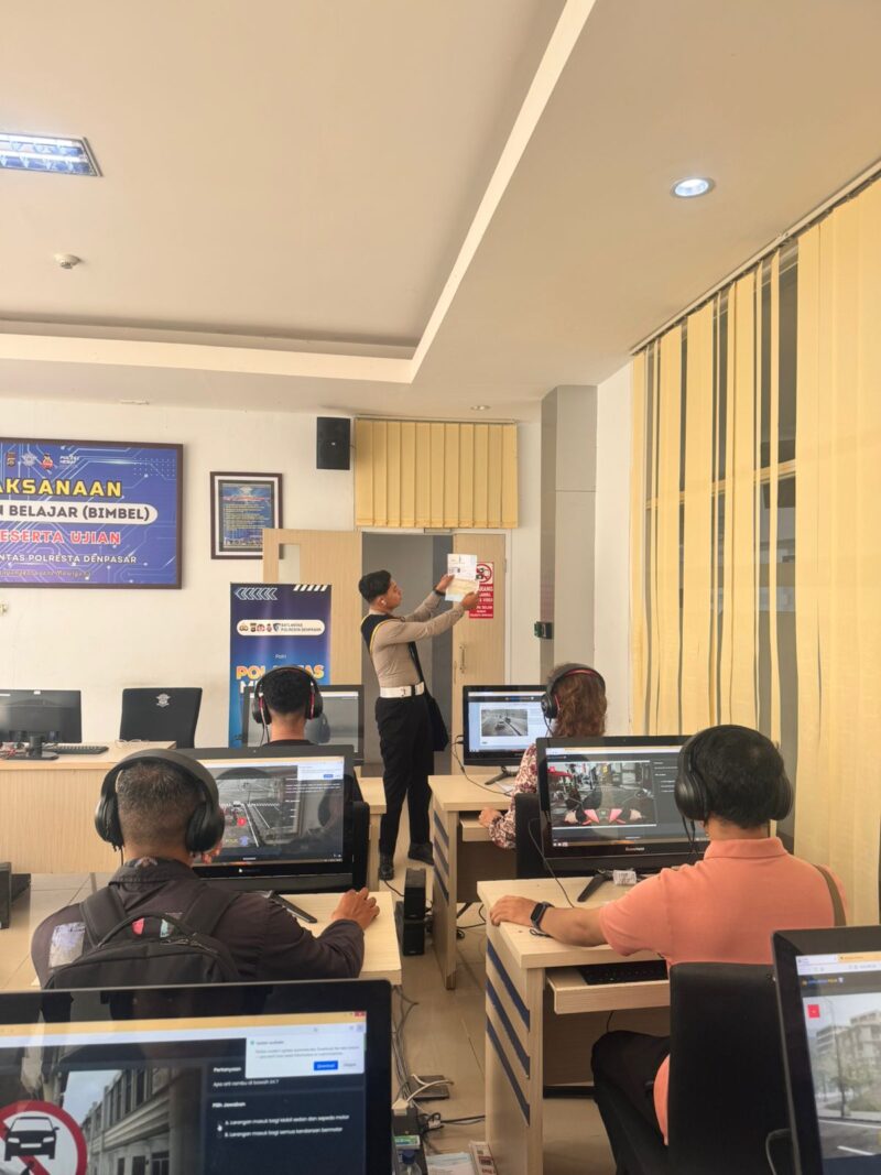 Kegiatan yang berlangsung di ruang ujian teori Satpas Polresta Denpasar ini terlihat humanis dan interaktif. Petugas dengan sigap membantu pemohon memahami tata cara pelaksanaan ujian berbasis komputer, mulai dari penggunaan perangkat, tata tertib ujian, hingga penjelasan soal-soal yang harus dijawab.