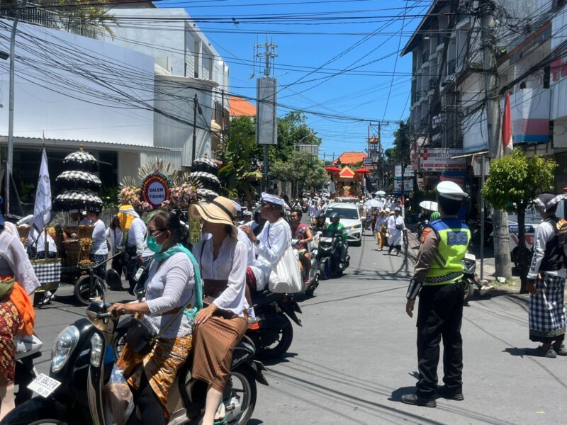 Personil Raimas & Polantas Disiagakan Polres Badung untuk Amankan Arus Melasti