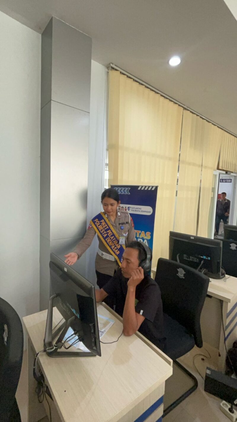 Dalam rangka meningkatkan kualitas pelayanan kepada masyarakat, personel Satuan Penyelenggara Administrasi SIM (Satpas SIM) Polresta Denpasar memberikan pendampingan kepada para pemohon SIM yang mengikuti ujian teori berbasis komputer, Jumat (30/1/2026). Hal ini sejalan dengan program Lantas yaitu Polantas Menyapa.