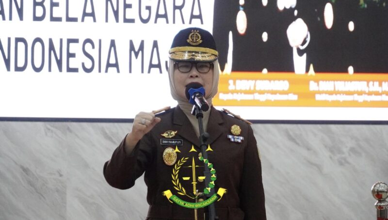 Wakil Kepala Kejaksaan Tinggi (Wakajati) Kepulauan Riau Diah Yuliastuti menjadi Inspektur Upacara Peringatan Hari Bela Negara Ke-77 Tahun 2025 di Aula Sasana Baharuddin Lopa Kejaksaan Tinggi Kepulauan Riau, pada Jumat (19/12/2025).