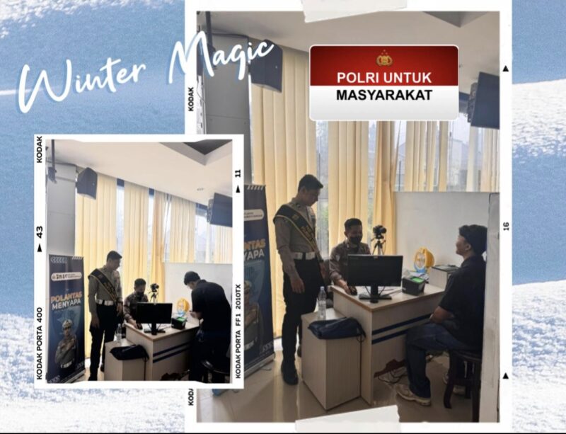 Dalam kegiatan ini, personil Polantas turun langsung mendampingi para pemohon Surat Izin Mengemudi (SIM) saat melakukan pendataan identitas hingga proses pengambilan foto SIM, pada Jumat (09/01/2026).
