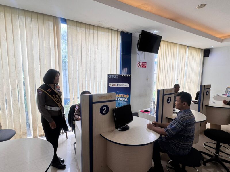 Tampak dalam kegiatan tersebut, personil Polwan Satlantas dengan sikap ramah dan penuh empati mendampingi masyarakat yang tengah mengurus keperluan administrasi di ruang pelayanan, pada Kamis (26/02/2026). Dengan sistem pelayanan yang tertata rapi dan suasana ruang yang nyaman, masyarakat dilayani secara langsung di loket yang telah disediakan.